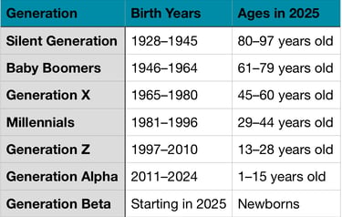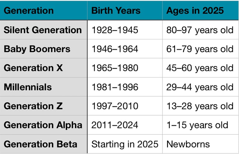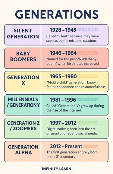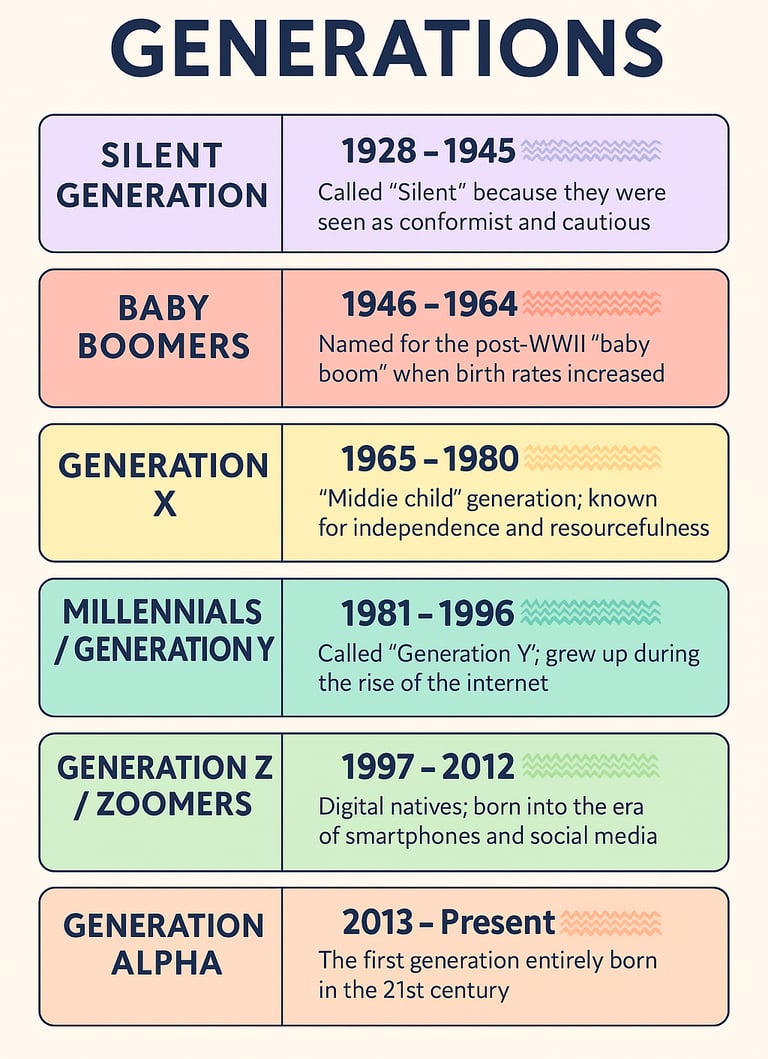 Thế hệ silent và baby boomer là một cách gọi của khoa học nhân khẩu để giải thích đại khái trước đó con người phát triển ra sao, nhìn chung không có nhiều dữ liệu để phân tích sâu ngoài tính bảo thủ và tuân thủ giá trị truyền thống, bùng nổ dân số...
