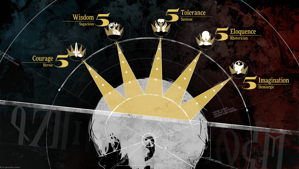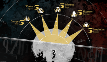 Hệ thống phẩm đức được khai thác từ akashic trong AAA bao gồm 5 chỉ số: courage (can đảm), wisdom (trí tuệ), tolerance (khoan dung), eloquence (hùng biện), imagination (tưởng tượng).